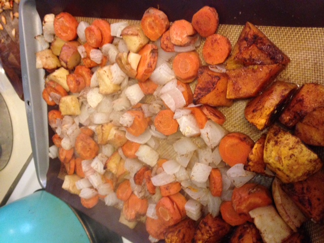 Good news: food should be easy, simple even! And cooking at home is, perhaps, the simplest thing you might do all day. You know what you’re putting into your awesome body, you aren’t paying extra for fancy restaurant decor and fabulous waitstaff. And you don’t have to wait too long. So let’s KISS. Ha. Let’s make dinner with stuff we have on hand, with no extra evening trips to the grocery store. Especially when it’s dark and raining five days straight in Portland (what!?).